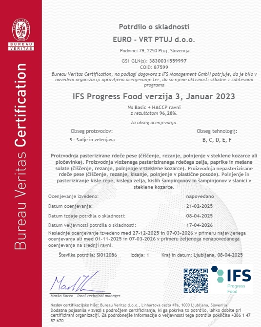 Z veseljem in ponosom sporočamo, da smo že dve leti zapored lastniki IFS certifikata !